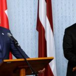 საქართველოს პრეზიდენტმა მიხეილ სააკაშვილმა და მისმა ლატვიელმა კოლეგამ ანდრის ბერზინშმა პირისპირ შეხვედრის შემდეგ, რიგის სასახლეში