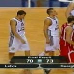 საქართველოს საკალათბურთო ნაკრები შეხვედრის პირველი ტაიმის შედეგებით, ლატვიის ნაკრებს 31-24 ამარცხებს.
